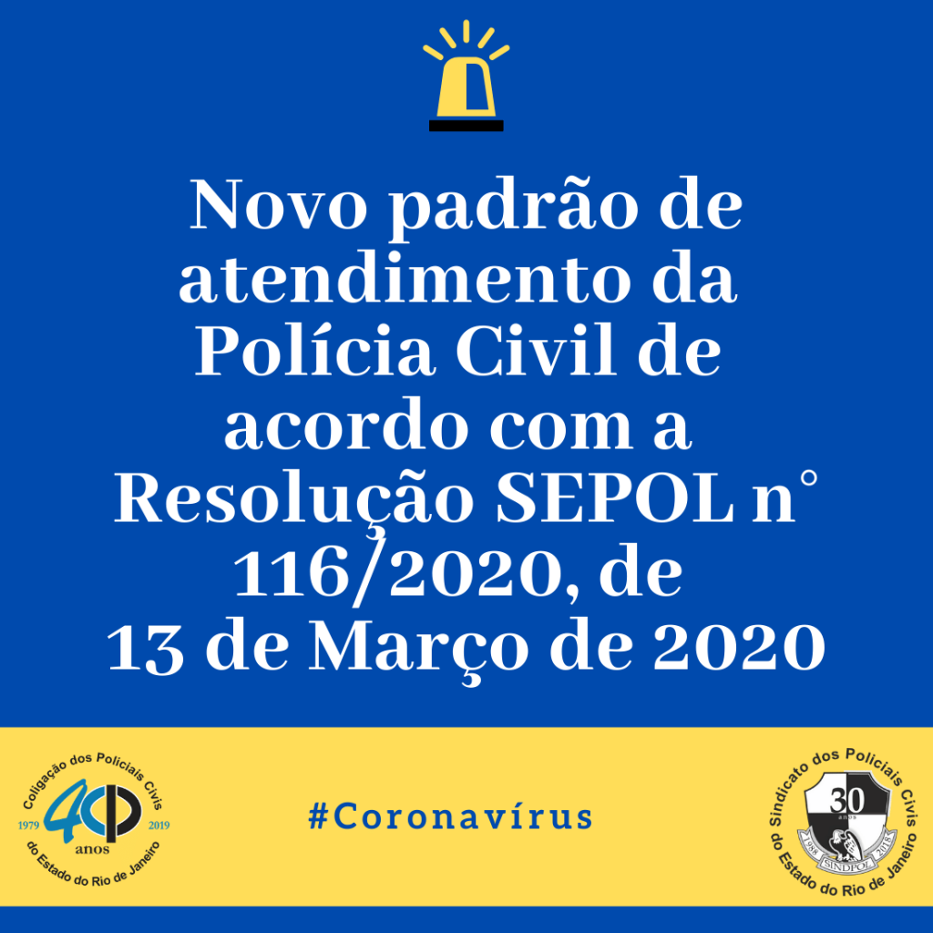 O SINDPOL/RJ e a COLPOL/RJ orientam seus associados, aos Policiais Civis e à população acerca do novo padrão de atendimento da Polícia Civil de acordo com a Resolução SEPOL n° 116/2020, de 13 de Março de 2020. Sugerimos que os policias civis IMPRIMAM E FIXEM esse comunicado para informação da população nos seus locais de […]