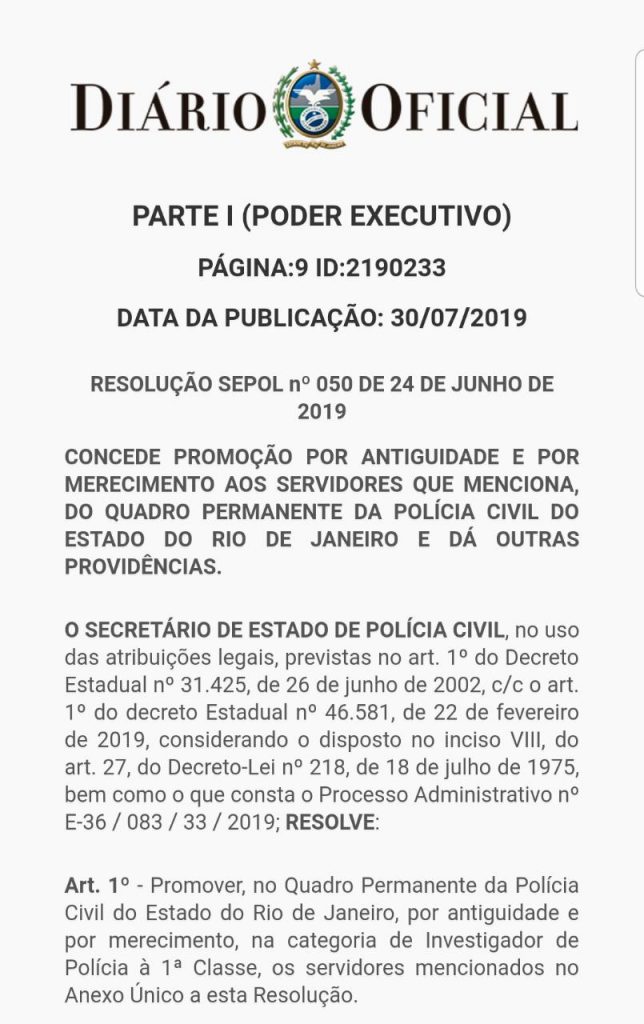 Promoções na PCERJ seguem sendo publicadas