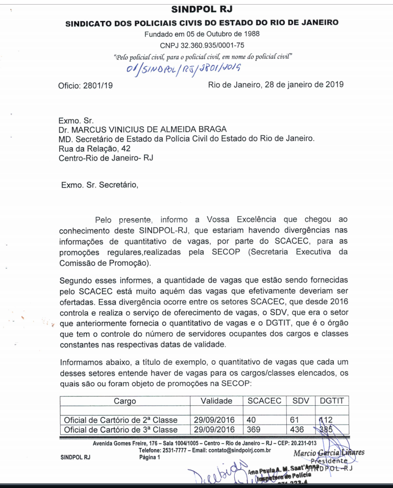 No início da semana passada, diversos editais de promoção que estavam “represados” na SECOP foram publicados no DOERJ. Embora continue em vigência a decisão judicial de segunda instância, em caráter liminar, nos autos da ação do SINDPOL/COLPOL para que as promoções não fossem suspensas, conforme determinado em ofício pelo Secretário de Estado da Casa Civil […]