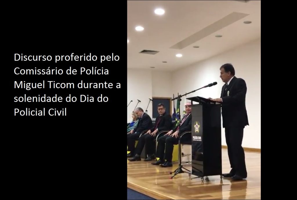 Discurso proferido pelo Comissário de Polícia Miguel Ticom, membro da diretoria do SINDPOL-RJ e do conselho fiscal da COLPOL-RJ, durante a solenidade do dia do Policial Civil (29/09), no auditório da CIDPOL
