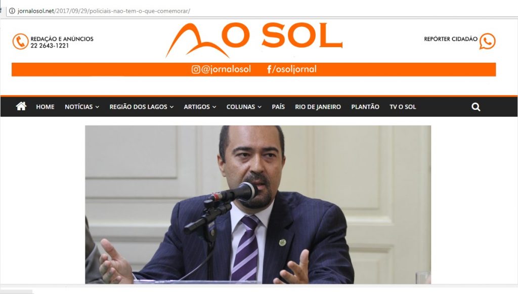 O presidente do SINDPOL-RJ e diretor da COLPOL-RJ, Marcio Garcia, falou à imprensa da Região dos Lagos sobre o dia do Policial Civil, sendo entrevistado pelo Jornal O Sol e pela Rádio Litoral FM, ambos sediados em Cabo Frio-RJ.