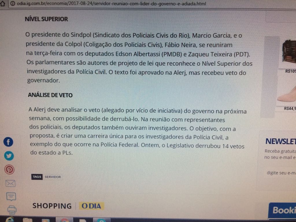 SINDPOL no jornal O Dia de 24/08. Leia aqui: