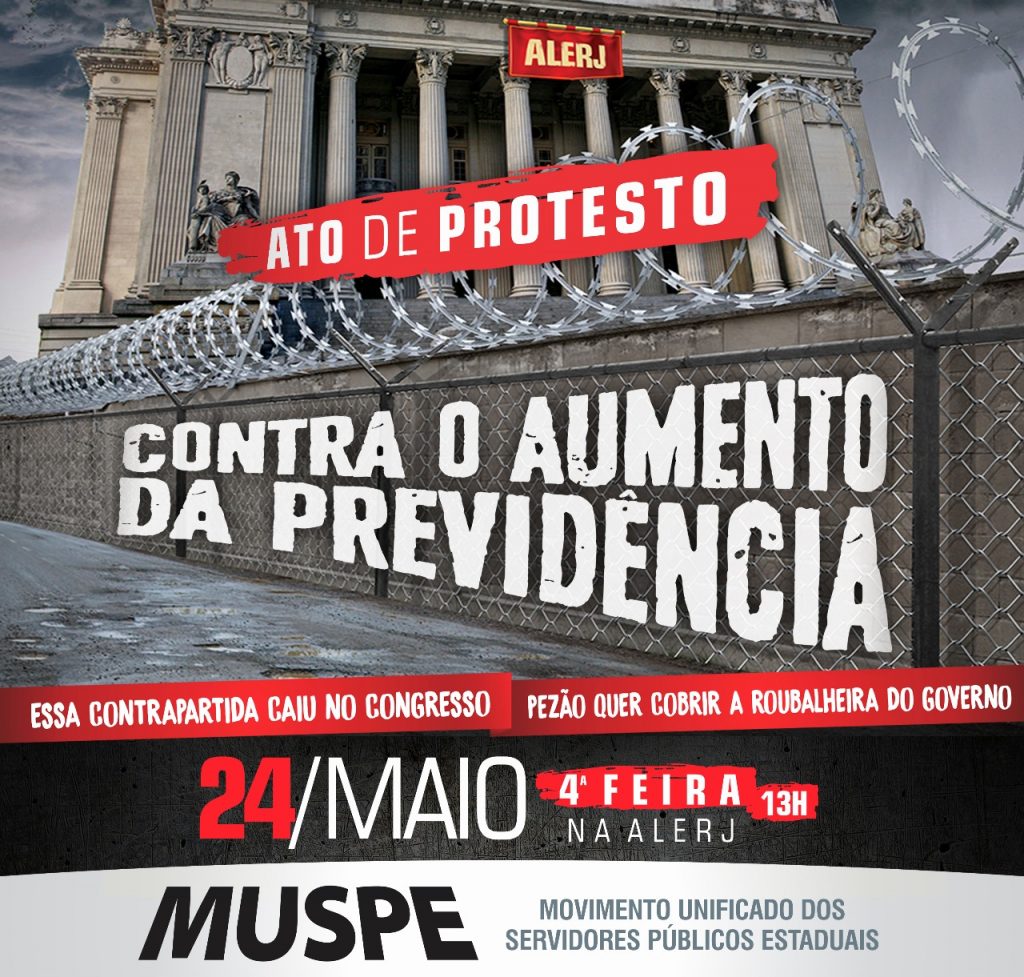 Ato de Protesto contra o aumento da Previdência – 24/05 às 13h, na Alerj