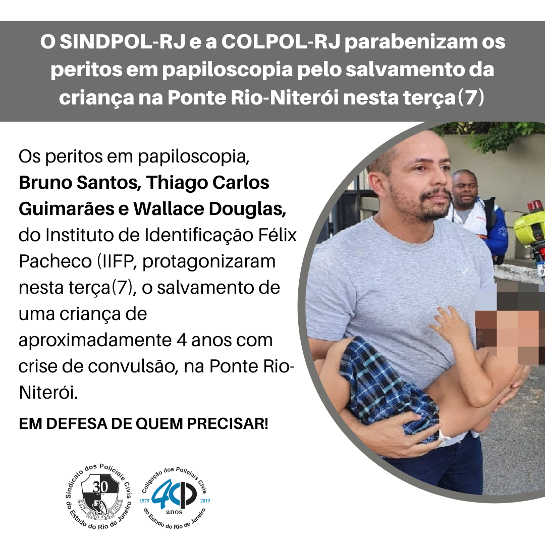 O SINDPOL-RJ e a COLPOL-RJ parabenizam os colegas Policiais Civis que prontamente socorreram a criança e estavam aptos para realizar os procedimentos necessários.