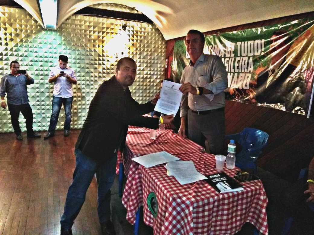 Presidente do SINDPOL-RJ e diretor de interesse de classe da COLPOL-RJ, Marcio Garcia, entrega ofício do SINDPOL-RJ e COLPOL-RJ ao Deputado Federal Jair Bolsonaro, cobrando apoio às demandas dos Policiais Civis do Brasil, em evento realizado ontem (08/12), no Tijuca Tênis Clube – Tijuca.