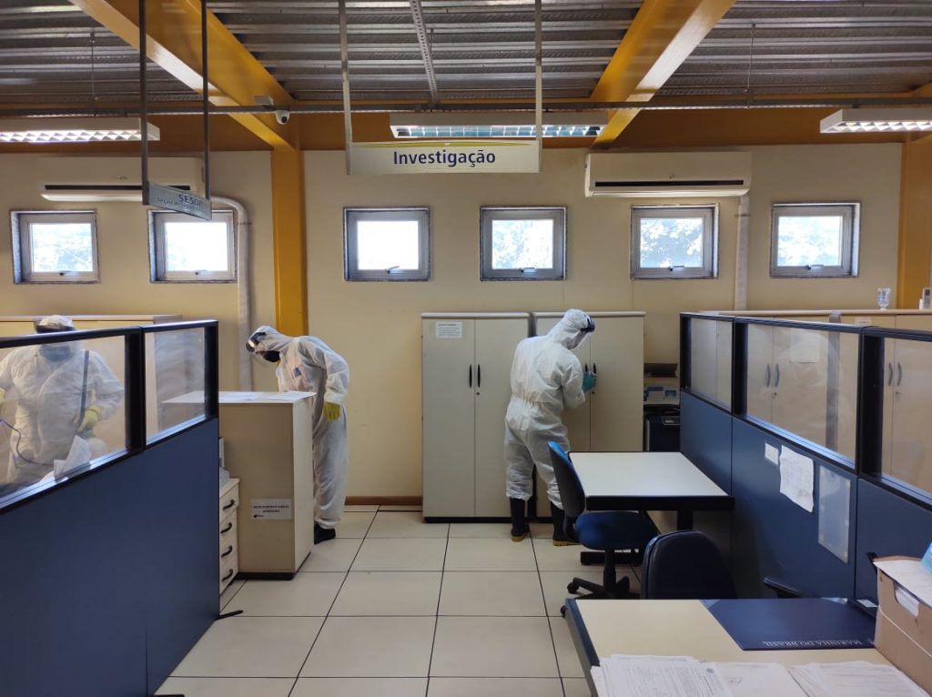 Dando continuidade ao serviço voluntário e gratuito de desinfecção e sanitização promovido pela parceria entre o SINDPOL-RJ e o Gabinete do Vereador Major Elitusalém, com apoio da COLPOL-RJ, as unidades contempladas na data de hoje foram a 35DP (Campo Grande), 36DP (Santa Cruz), 42DP (Recreio dos Bandeirantes), 43DP (Guaratiba) e ainda, na Baixada Fluminense, a 57DP (Nilópolis) e 60DP (Campos Elíseos).