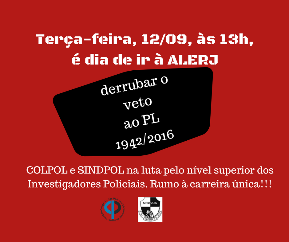SINDPOL e COLPOL convocam para amanhã, dia 12/09, às 13h na ALERJ. Assista ao vídeo:
