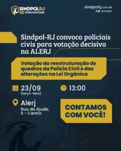 Sindpol-RJ convoca policiais civis para votação decisiva na ALERJ